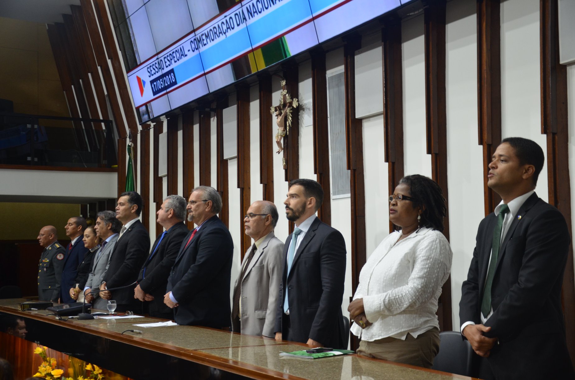 Estiveram presentes na sessão especial o presidente da Assembleia Legislativa da Bahia, o deputado estadual Ângelo Coronel; o Procurador de Justiça, Jeder Rocha, representante da procuradora- geral Ediene Lousado; a Corregedora da Defensoria Pública ,Maria Célia Padilha; o secretário da Justiça, Direitos Humanos e Desenvolvimento Social, Paulo César Lisboa; o Defensor Público e Chefe da Defensoria Pública da União na Bahia, Bruno de Andrade Laje; o Defensor Público-Geral da Bahia, Clériston Cavalcante de Macêdo; a Ouvidora-geral e presidente do Conselho Nacional das Ouvidorias das Defensorias Públicas, Vilma Reis; Conselheiro substituto Ronaldo Nascimento de Santana, representante do presidente do Tribunal de Contas dos Municípios, Francisco de Souza; o Presidente da Associação dos Defensores Públicos do Estado da Bahia, João Carlos Gavazza e o Coronel Nunes, representante do Comandante-Geral do Corpo de Bombeiros Militares da Bahia, Coronel Teles.