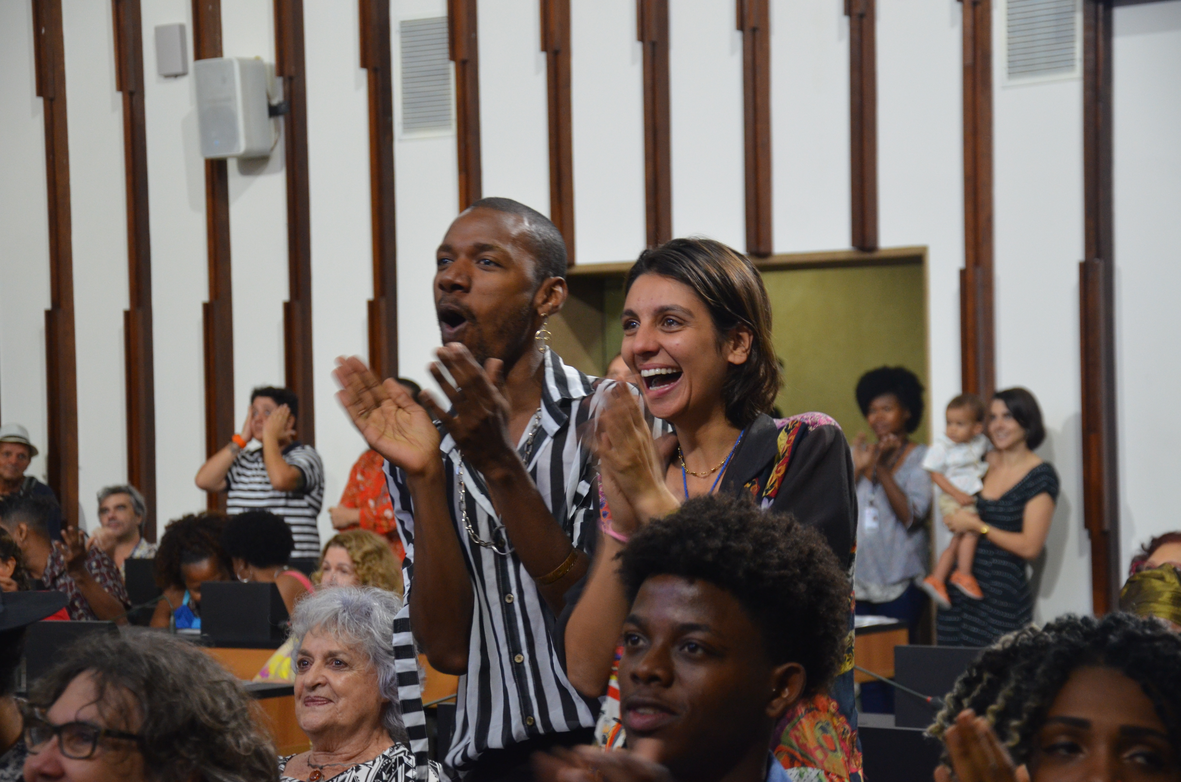 Marcio se emocionou ao lembrar o sofrimento dos povos indígenas e também dos avós e do pai. Fez questão de lembrar dos mais antigos, das mulheres negras que o ajudaram a ser o que ele é. Agradeceu aos deputados e destacou a relação com Neusa e Marcelino.