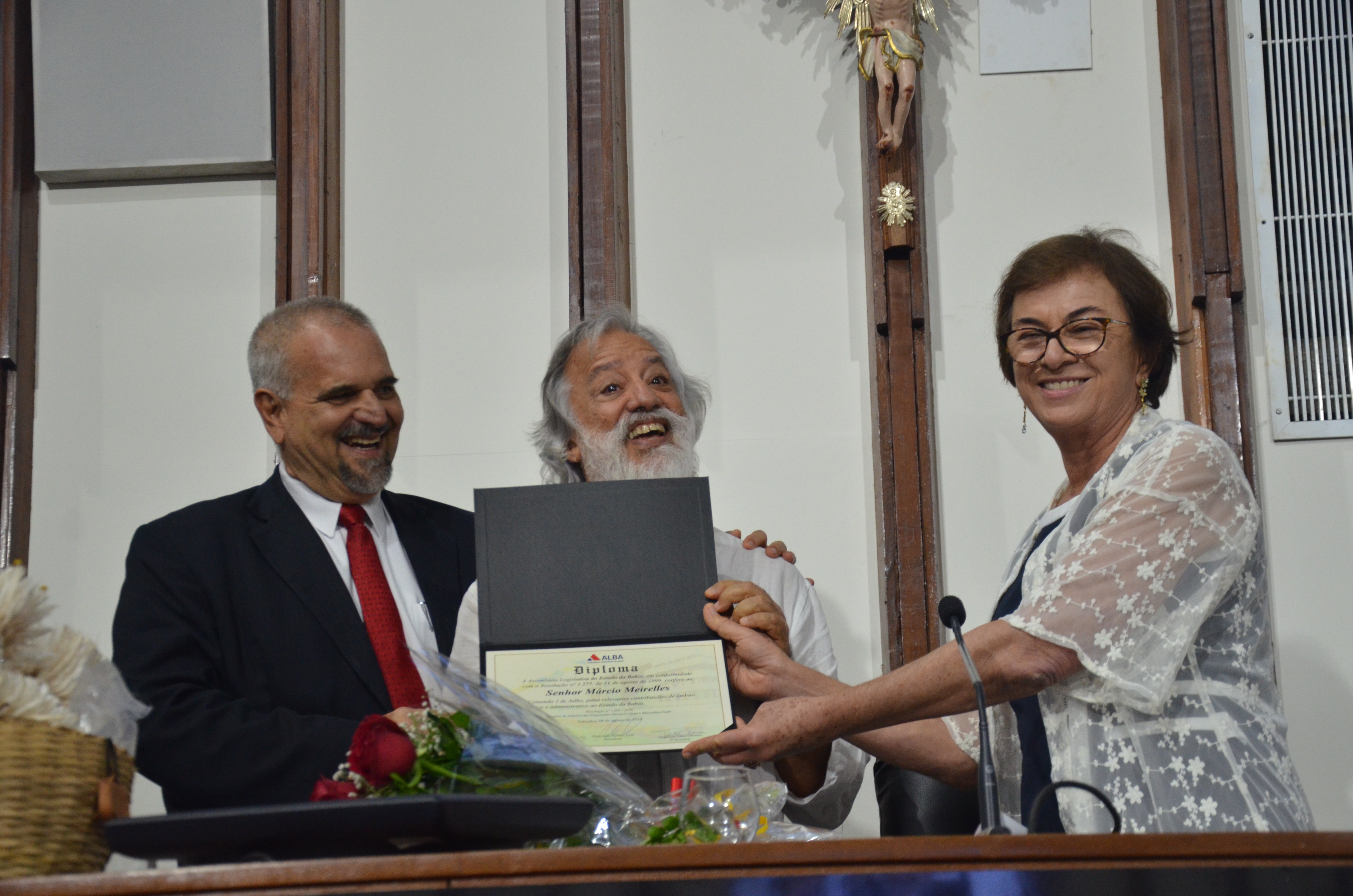 O Plenário da Assembleia Legislativa da Bahia (Alba) transformou-se, nesta quinta-feira (8), em um verdadeiro palco para conceder a Comenda Dois de Julho ao diretor teatral, cenógrafo e figurinista, Márcio Meireles. A mais alta honraria do parlamento baiano foi proposta pelos deputados Neusa Cadore (PT) e Marcelino Galo (PT) e concedida em meio a plateia de artistas, produtores culturais, estudantes, gestores e representantes de movimentos culturais.